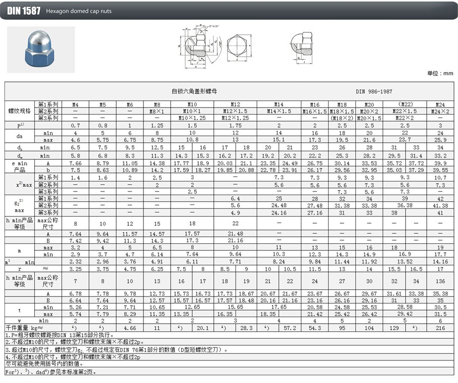 盖型螺母DIN1587